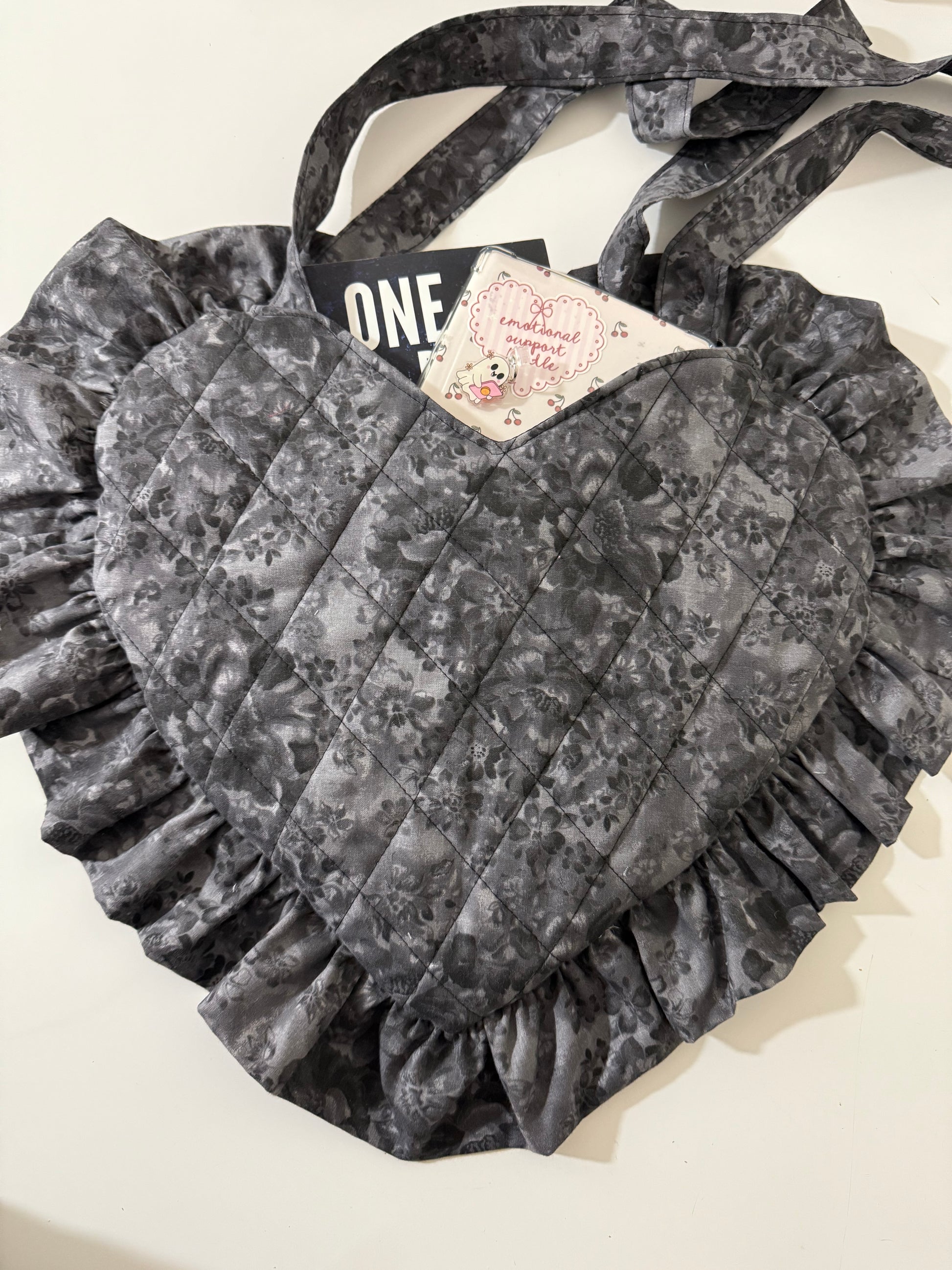 BLACK/GRAY HEART BOOK BAG