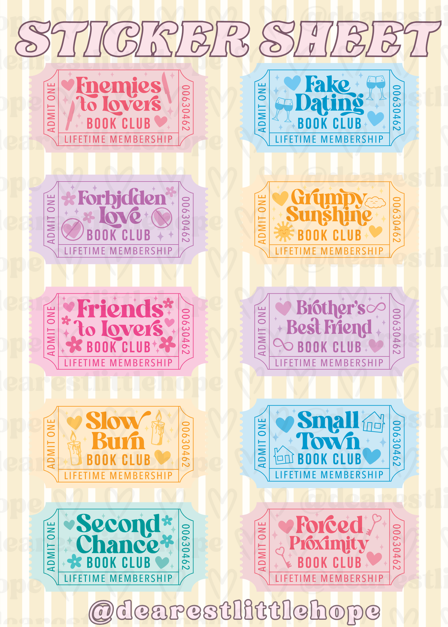 BOOKISH TICKETS STICKER SHEET 4.58IN X 6.41IN