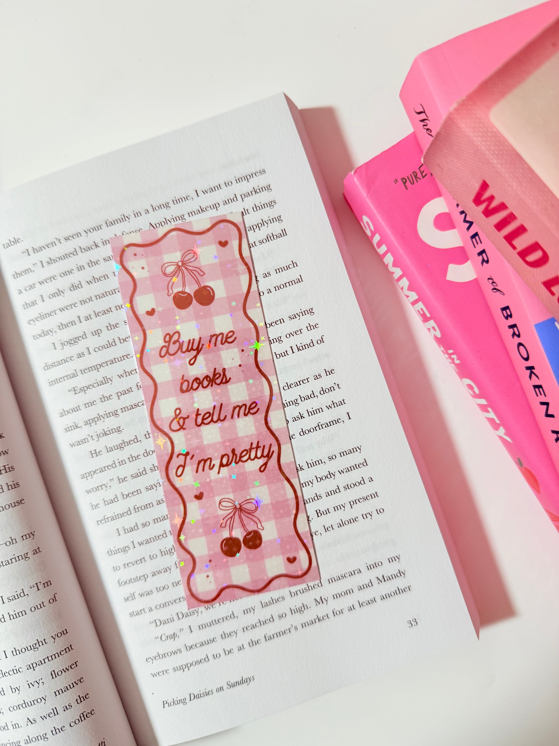 BUY ME BOOKS AND TELL ME IM PRETTY HOLOGRAPHIC BOOKMARK