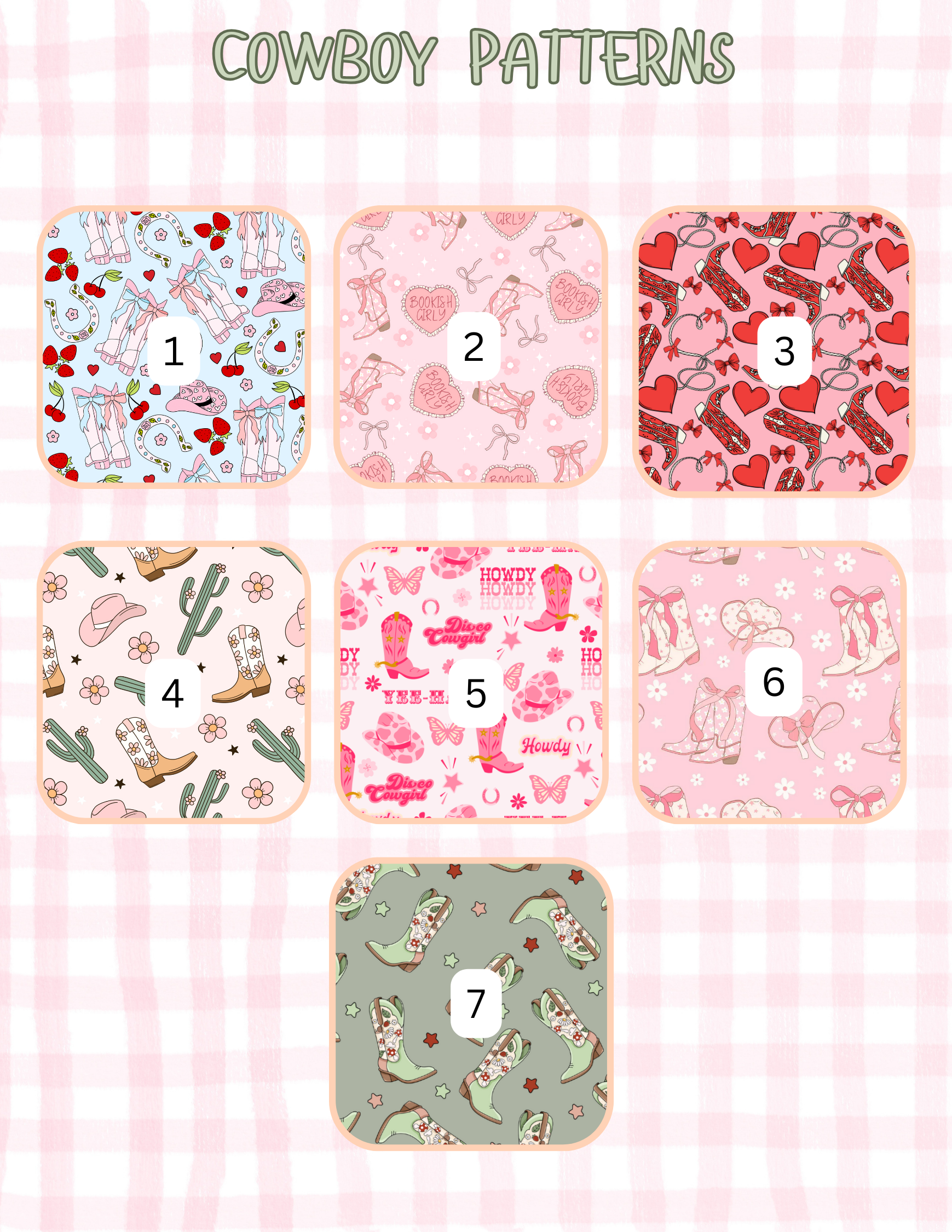 COWBOY PATTERNS ALL SIZES SLEEVES/POUCHES