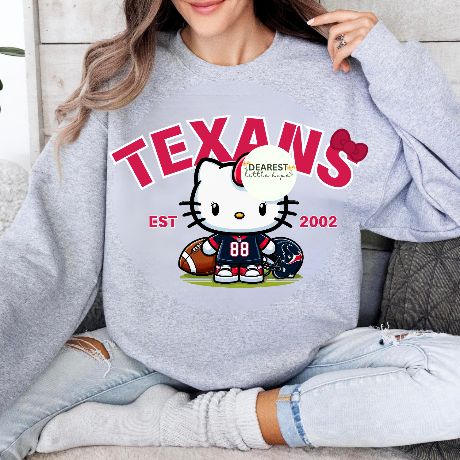 HELLO KITTY TEXANS ADULT SIZE (SHIRT/CREWNECK)