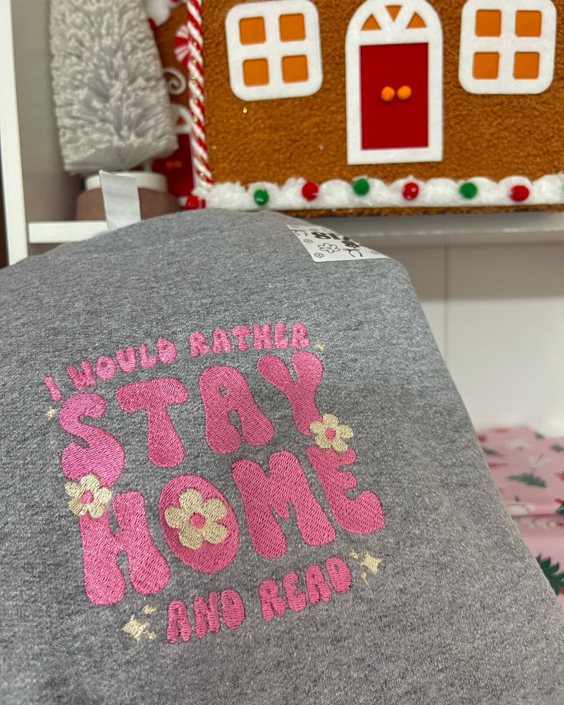 ID RATHER STAY HOME AND READ EMBROIDERED ADULT SIZE (CREWNECK)