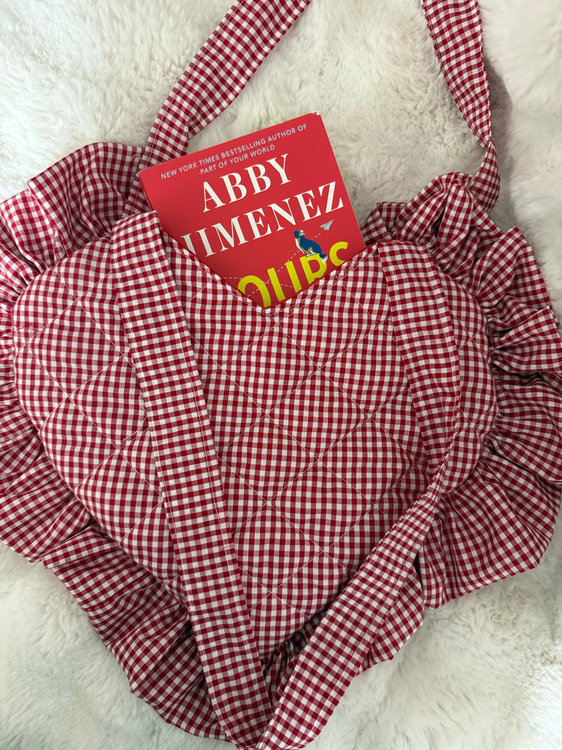 our heart book bags are perfect to carry your regular paperback book, kindle + a quick little coffee shop run!